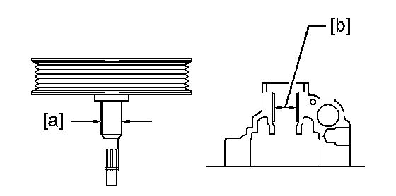 (a) Using a micrometer, measure the outer diameter [a] of the vane pump shaft with pulley.
