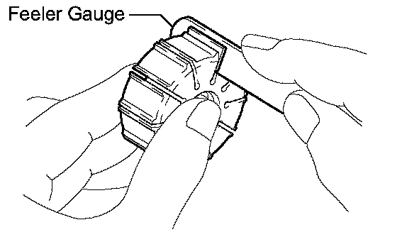 (b) Using a feeler gauge, measure the clearance between the side face of the vane pump rotor groove and the vane pump plates.