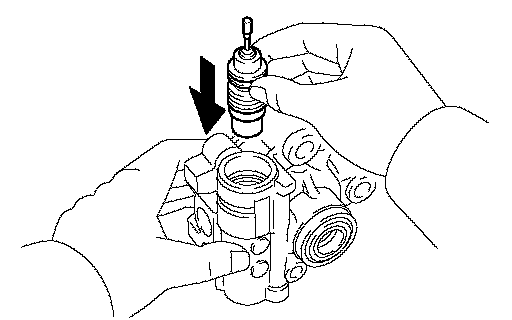 (a) Coat the flow control valve assembly with power steering fluid and check that it falls smoothly into the flow control valve due to its own weight.