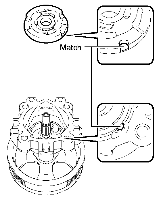 (b) Gradually insert the vane pump shaft with pulley.