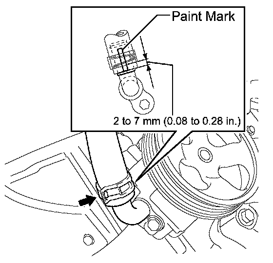 ^ Connect the No. 1 oil reservoir to pump hose with the paint mark facing toward the rear of the vehicle.