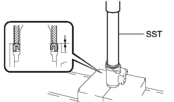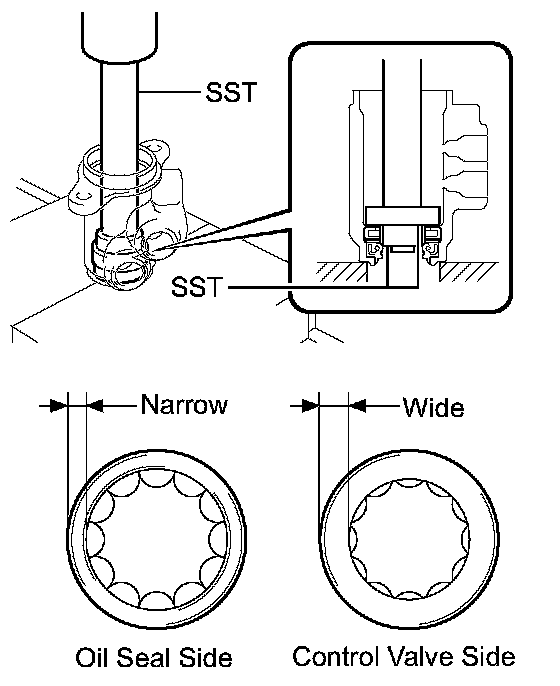 NOTICE: Make sure that the power steering control valve upper oil seal is installed in the correct direction as shown in the illustration.