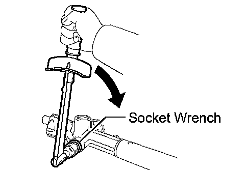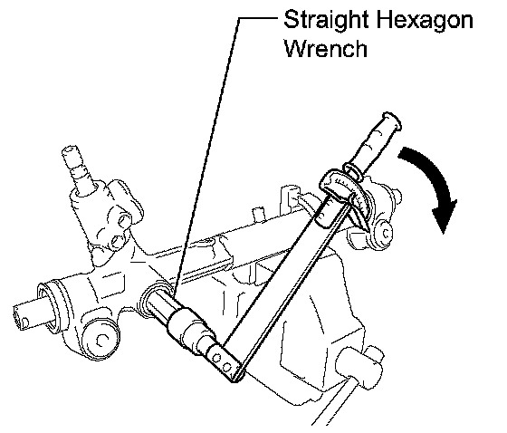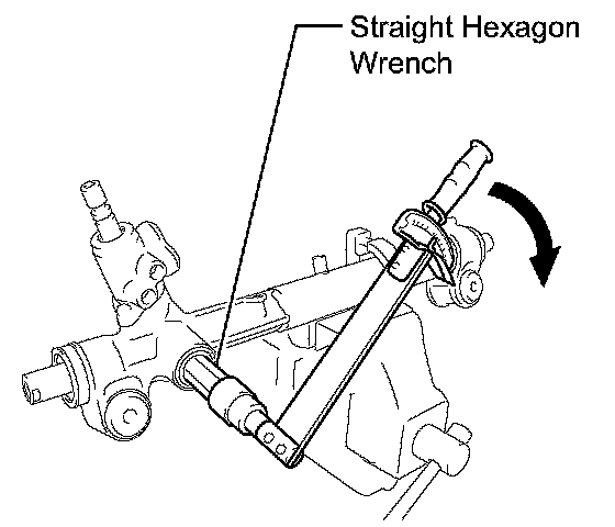 (j) Using a straight hexagon wrench (24 mm (0.94 inch)), loosen the rack guide spring cap until matchmarks and matchmarks on the rack guide spring cap are aligned. Measure the rotating torque required when loosening the rack guide spring cap.