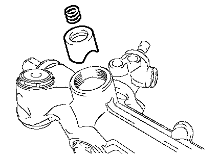 NOTICE: Make sure that no foreign matter, such as aluminum dust, is on the power steering rack housing and rack guide spring cap.