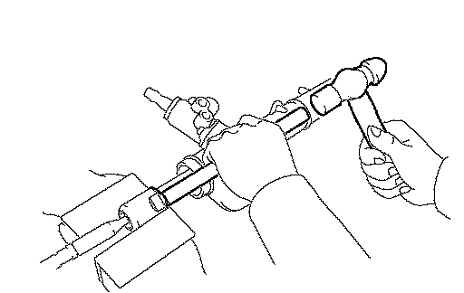 HINT: Tap the power steering rack housing and rack guide spring cap strongly and repeatedly to stake them securely.