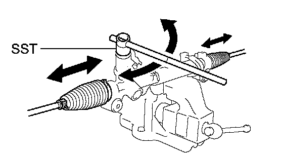 (b) Using SST, turn the pinion and check that the rack boots expand and contract smoothly.