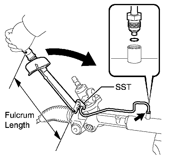 (b) Using SST, install the right turn pressure tube to the power steering link assembly.