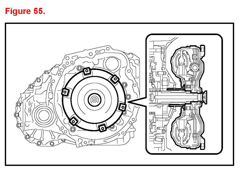 11. Install the 6 drive plate and torque converter clutch setting bolts.