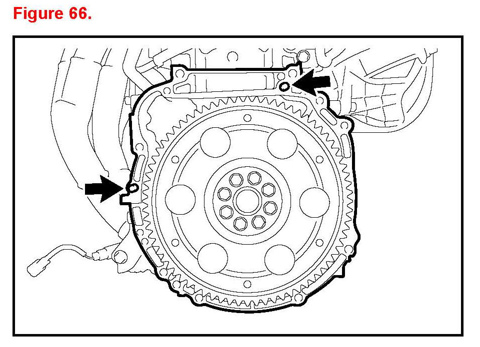 ^ Confirm that the 2 knock pins are on the transaxle contact surface of the engine block before transaxle installation.