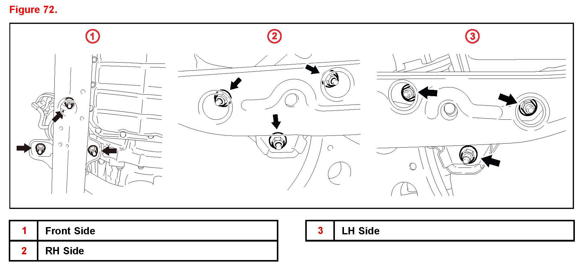 9. Install the lower (5) transaxle bolts.