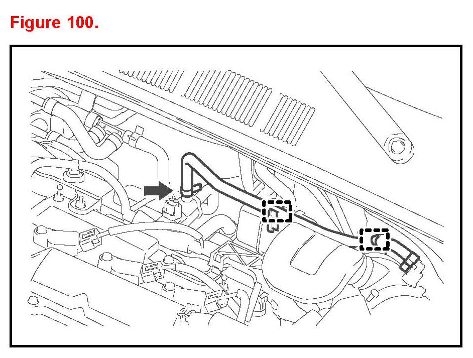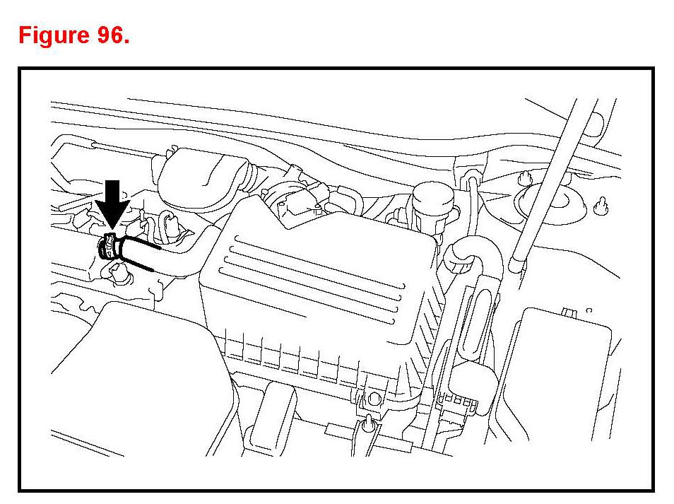 F. For PZEV vehicles: Connect the hose and engage the hose to the clips on the air cleaner hose.