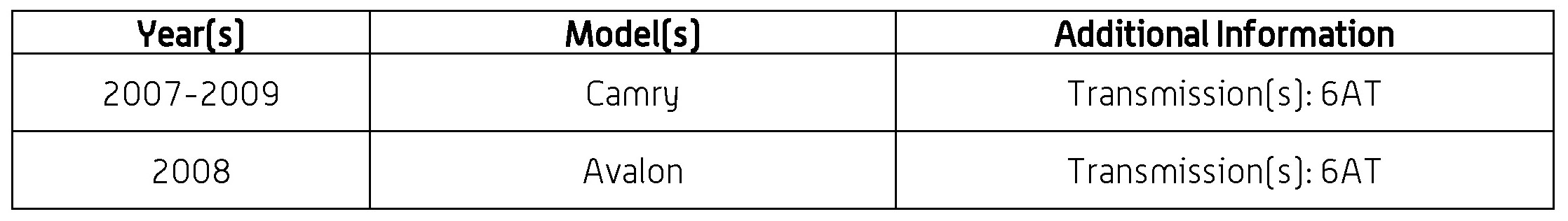 '07-'08 Camry, '08 Avalon