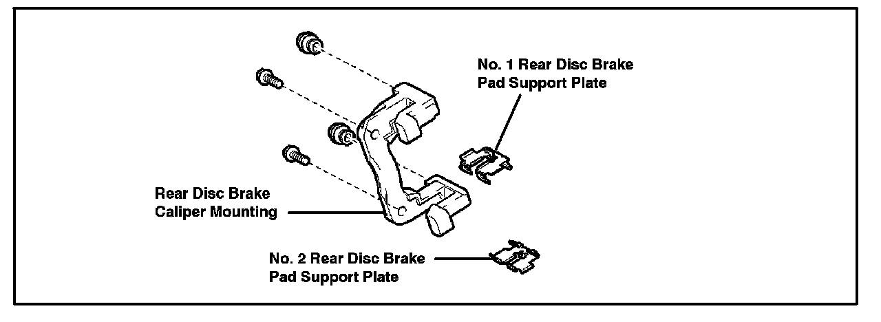 a. Remove the No. 1 rear disc brake pad support plate from the rear disc brake caliper mounting.