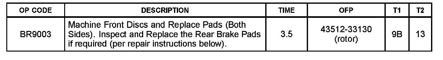 ^ If the code is D6247-FF do not replace the rear brake pads.