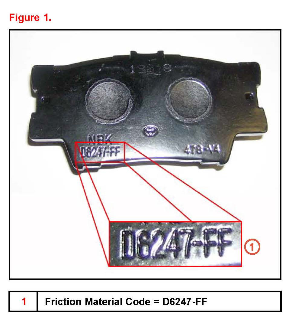 3. Remove the rear pads and check the pad material code on the lower left corner of the pad backing plate (see figure 1).