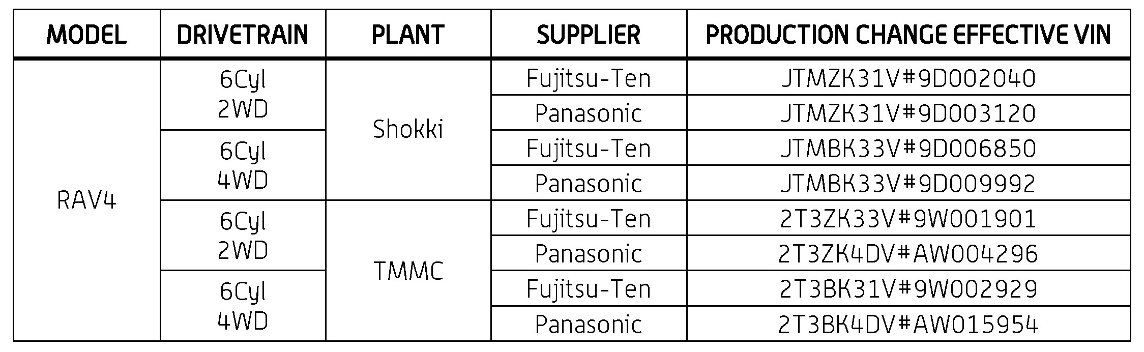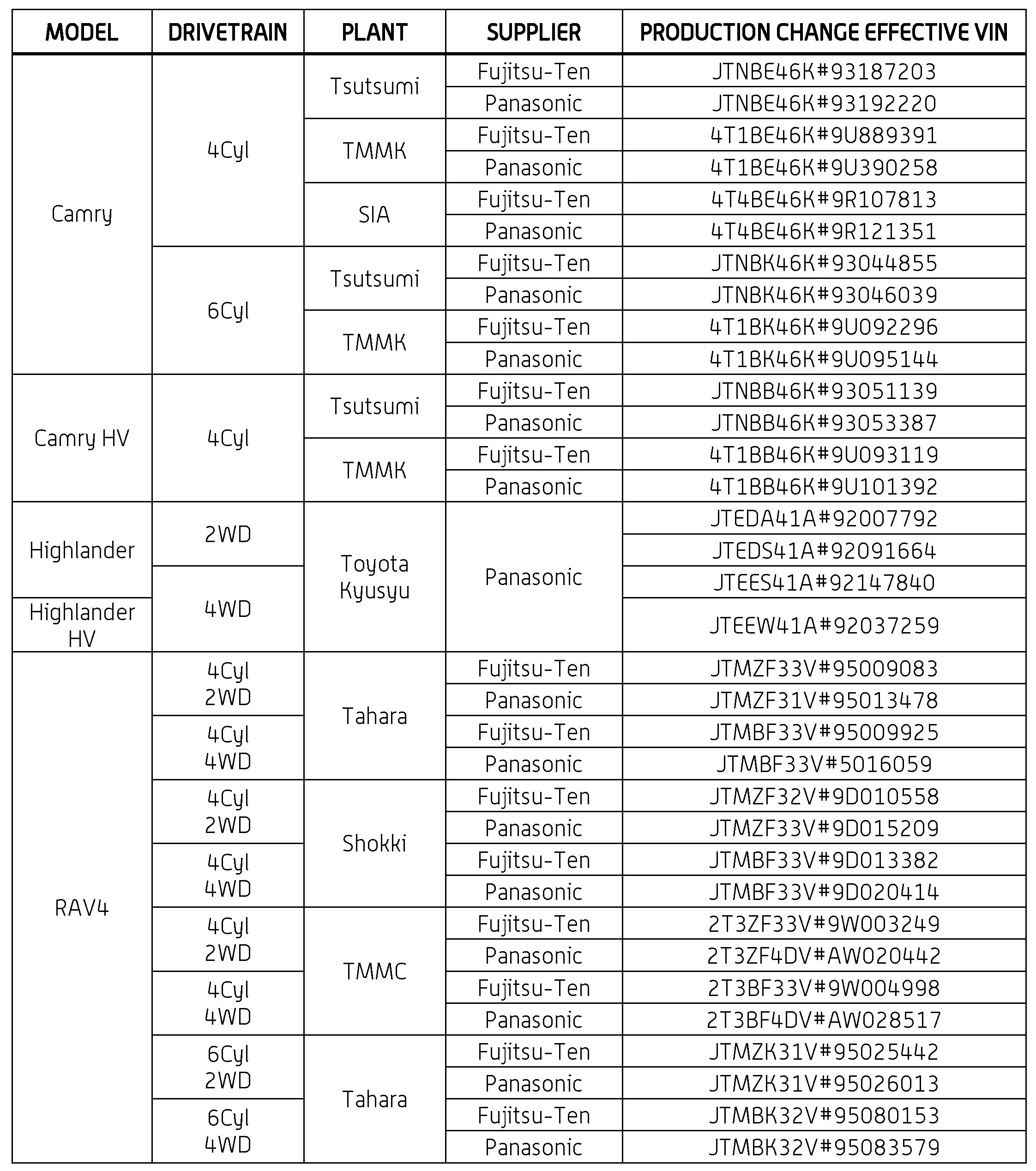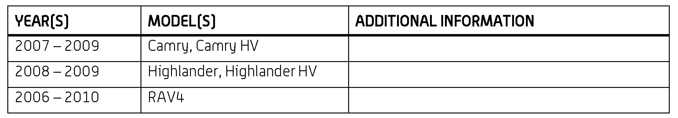 '07-'09 Camry, Camry HV; '08-'09 Highlander, Highlander HV; '06-'10 RAV4