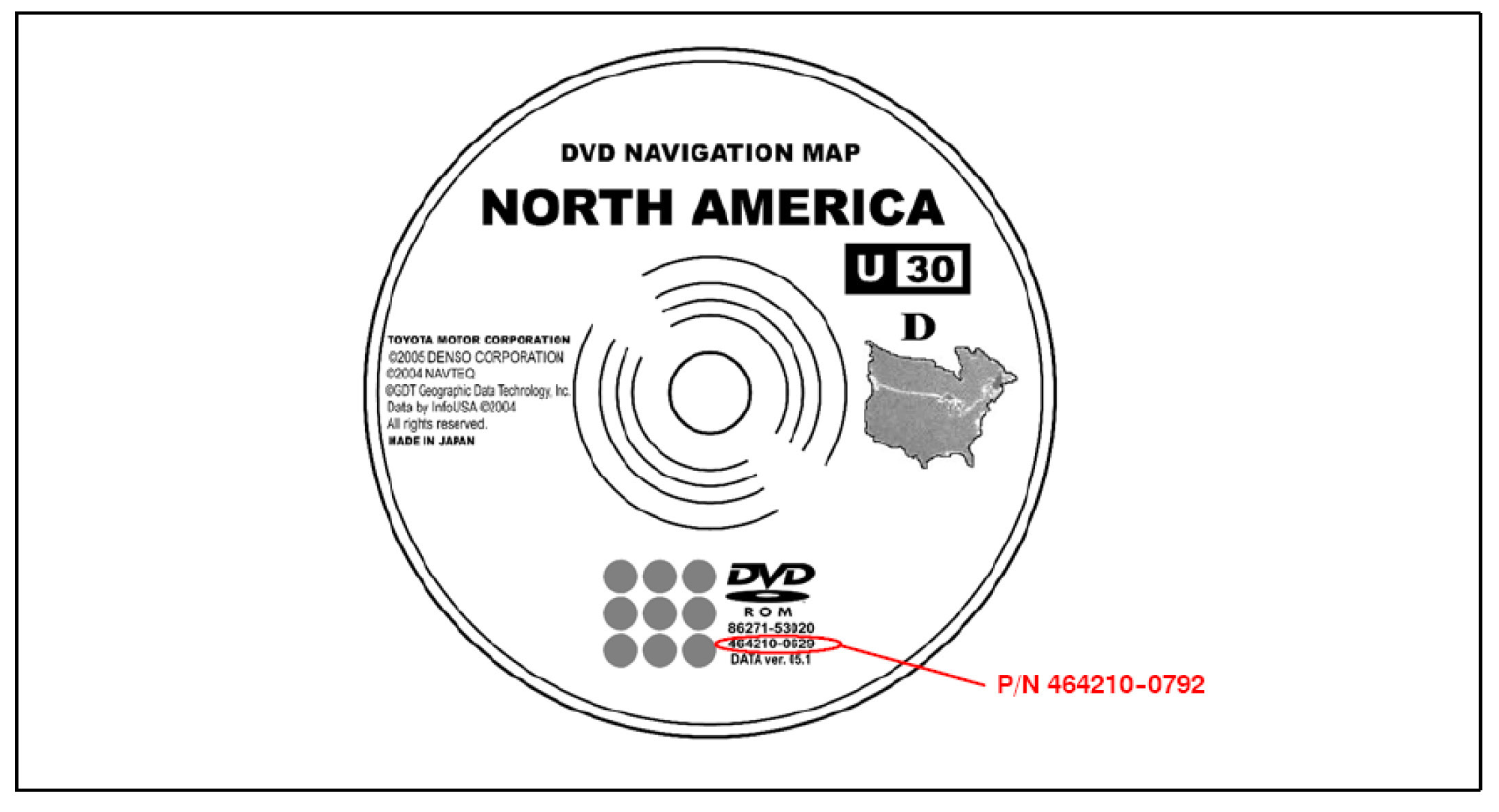 The map disc supplier part number changed to 464210--0792. Refer to the illustration to locate the supplier's part number (directly below the OEM part number):
