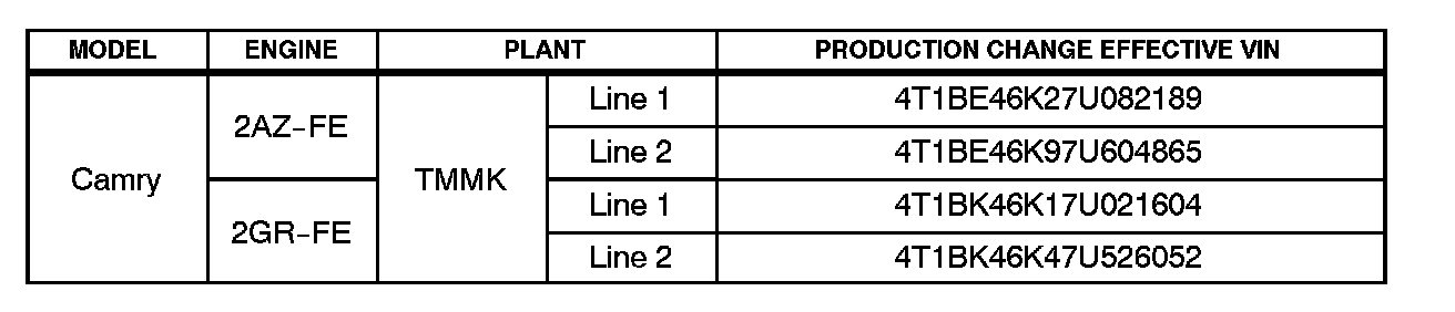 ^ 2007 model year Camry vehicles produced BEFORE the Production Change Effective VINs shown below.