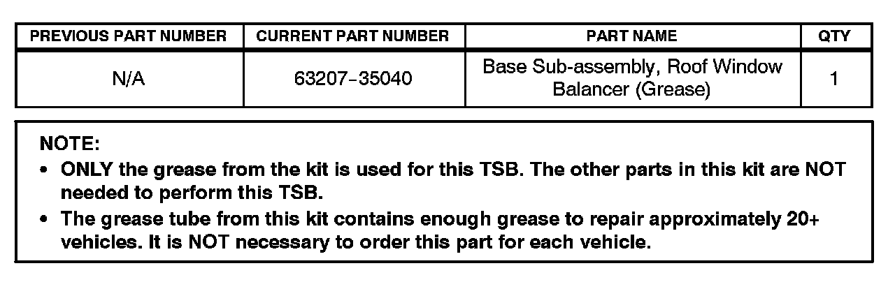 18. Apply the grease from the "Base Sub-assembly, Roof Window Balancer" kit (PN 63207-35040) on the end of the lifter bar.