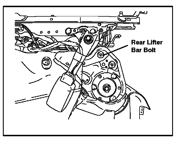 The wiring harnesses and the lower trim need to be moved out of the way to access the rear lifter bar.