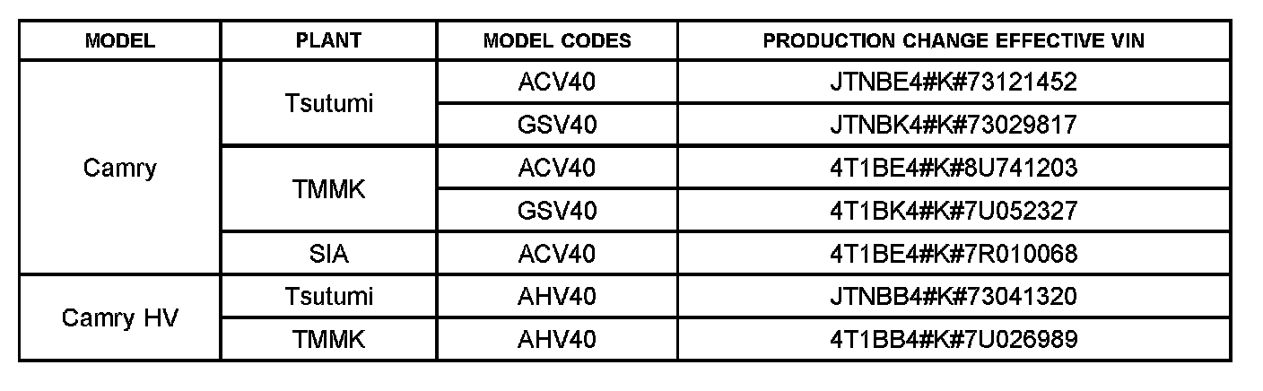 ^ Applicability has been updated to include 2007 model year Camry HV vehicles.