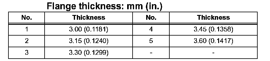 Flange thickness: mm (inch):