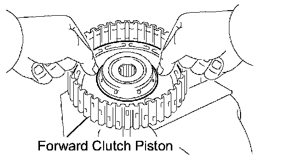 NOTICE: Be careful not to damage the lip seal of the forward clutch piston.
