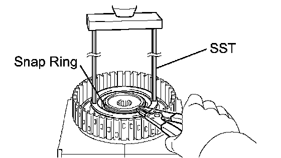 (a) Place SST on the spring retainer and compress the return spring with a press.