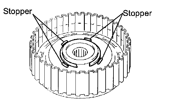 NOTICE: The end gap of the snap ring should not be aligned with any of the stoppers.