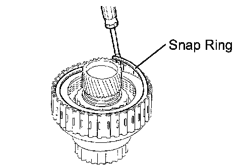 (a) Using a screwdriver, remove the No. 2 underdrive clutch flange hole snap ring.