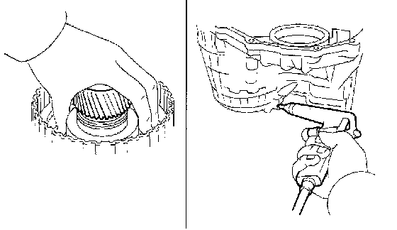 (b) Holding the underdrive clutch piston by hand, apply compressed air (392 kPa, 4.0 kgf/cm 2, 57 psi) to the transaxle case to remove the underdrive clutch piston.