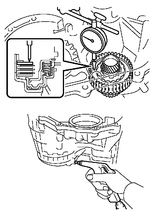 (c) Measure the underdrive clutch pack clearance while applying and releasing compressed air (392 kPa, 4.0 kgf/cm, 57 psi).