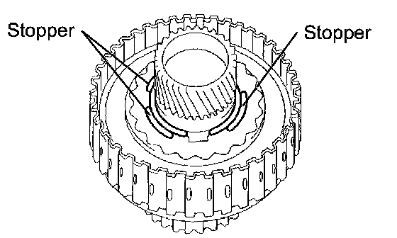 NOTICE: The end gap of the snap ring should not be aligned with any of the stoppers.