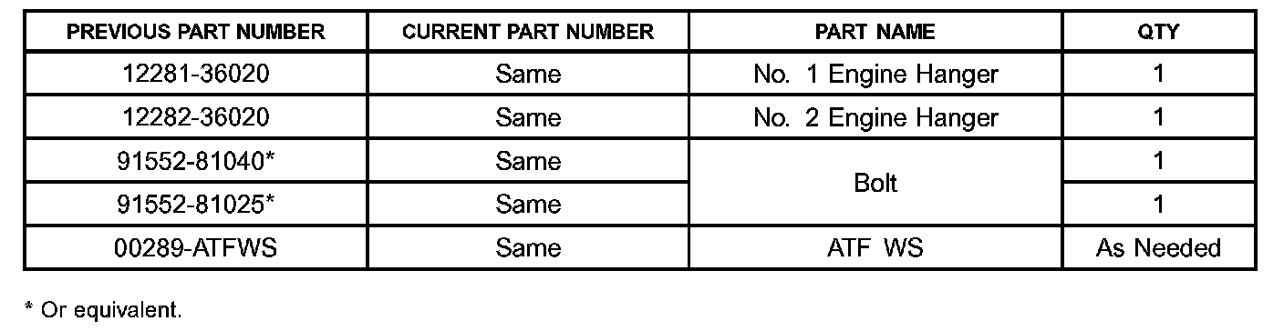 * Bolts: P/N 91552-81040, 91552-81025 (or equivalent)