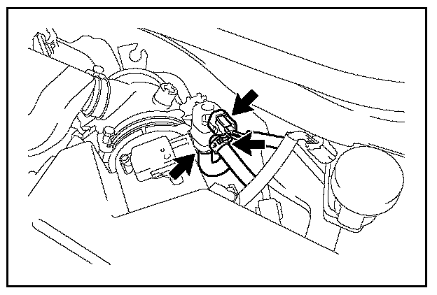 B. Disconnect the vacuum switching valve connector and 2 hoses.