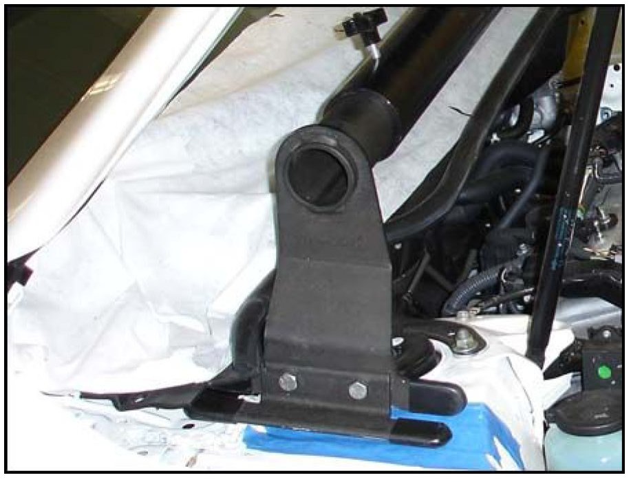 * To prevent dents in the strut tower panel, please assure that the main bar legs with 90 degree brackets are installed.