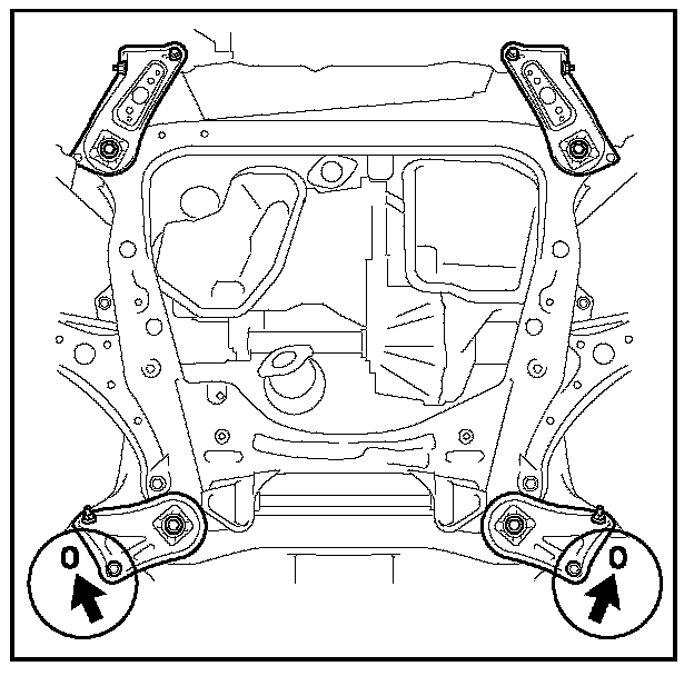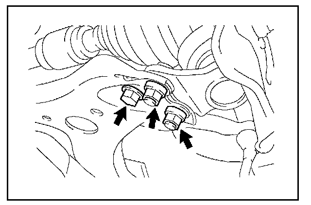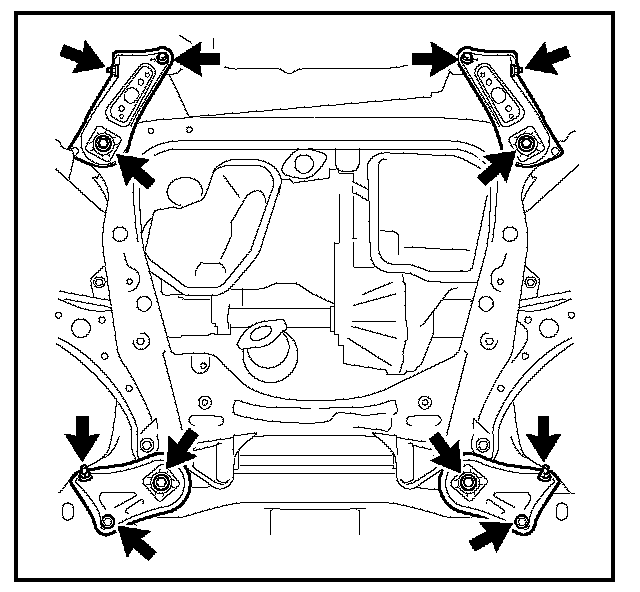 28. Remove the engine mounting insulator bolts and nuts from the sub-frame assembly.