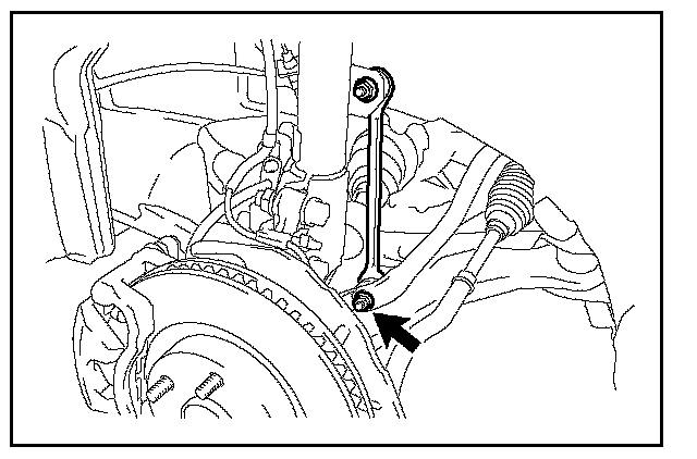 26. Separate the front stabilizer link assembly by removing the nut.
