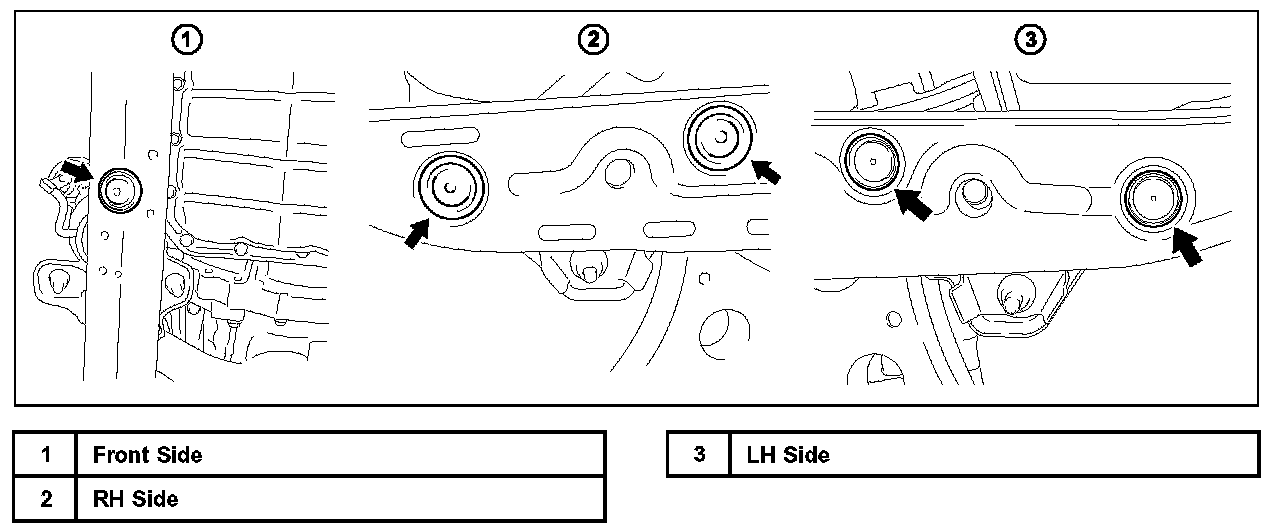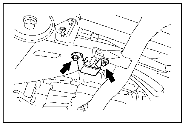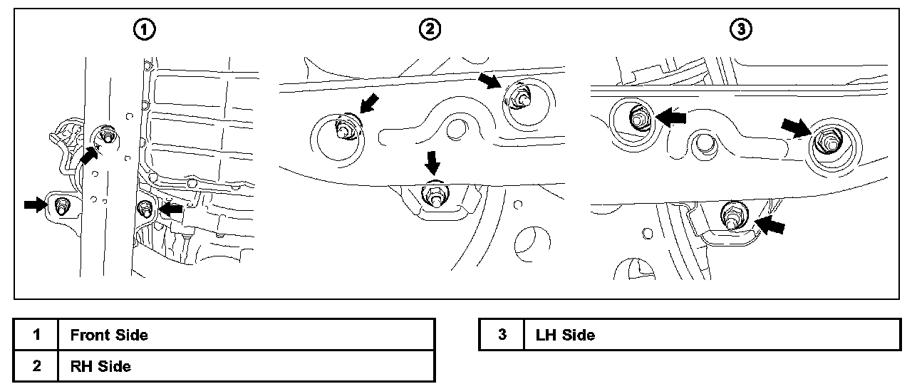 Before removing the bolts ensure the Engine Support Bar is secure and is supporting the engine weight to ensure no damage to vehicle or technician.