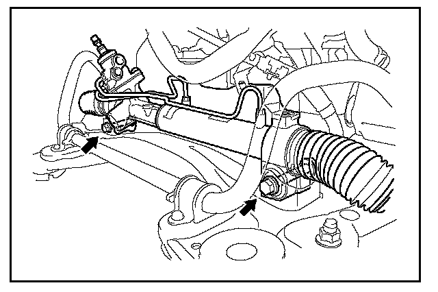Remove the 2 bolts, 2 nuts, and the power steering link assembly.
