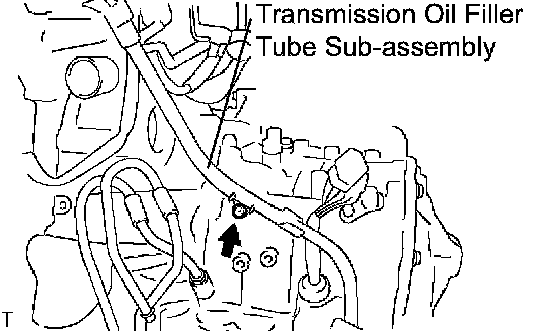 (b) Remove the bolt and transmission oil filler tube subassembly.