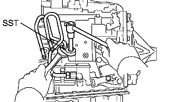 (a) Using SST and a wrench, disconnect the No. 1 oil cooler outlet tube.