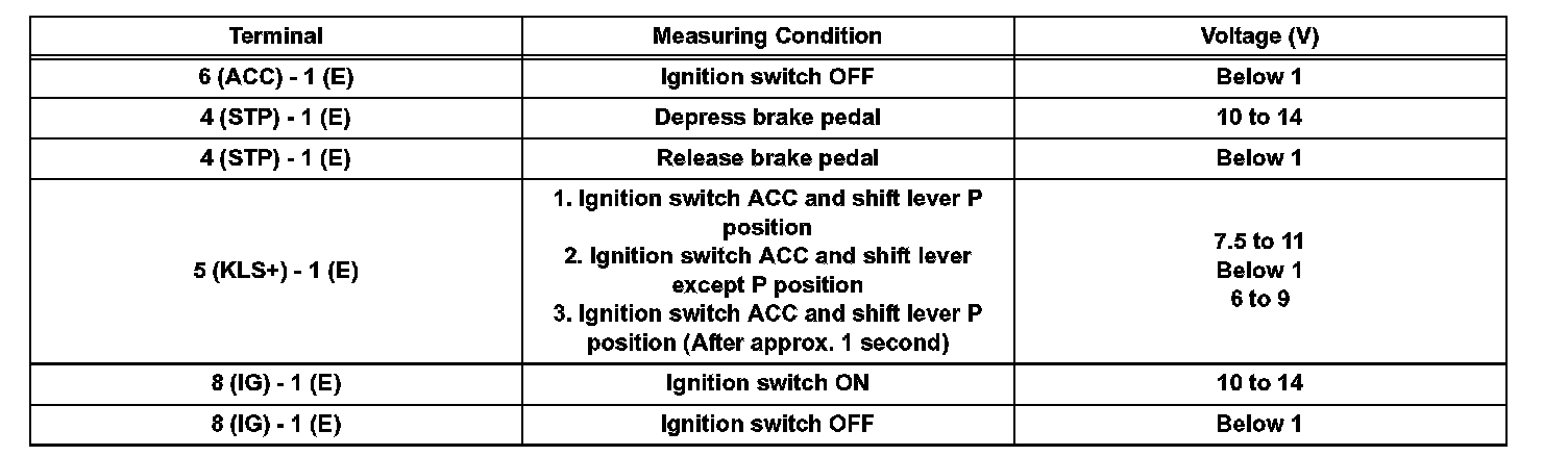 4. INSPECT SHIFT LOCK CONTROL ECU