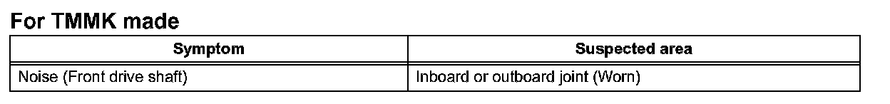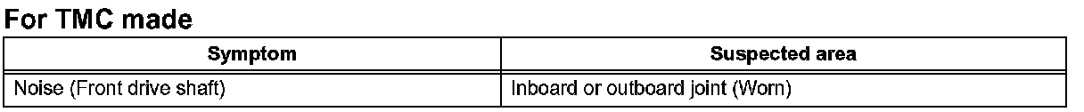 Problem Symptoms Table - Drive Shaft System