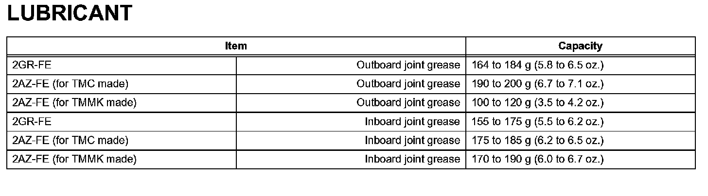 Drive Shaft - Lubricant:
