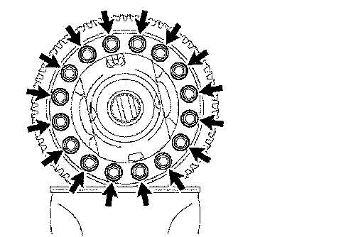 (c) Aligning the matchmarks, quickly install the front differential ring gear to the front differential case.