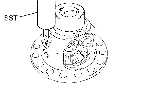 (a) Using SST and a hammer, unstake the staked part of the front differential case.