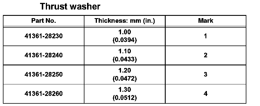 If backlash is out of specification, install proper side gear thrust washers.