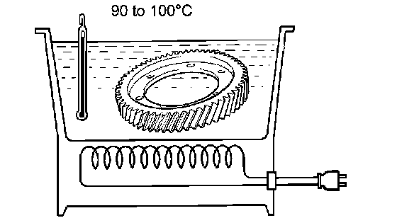 (a) Using a heater, heat the front differential ring gear to 90 to 100°C (194.0 to 212.0°F).