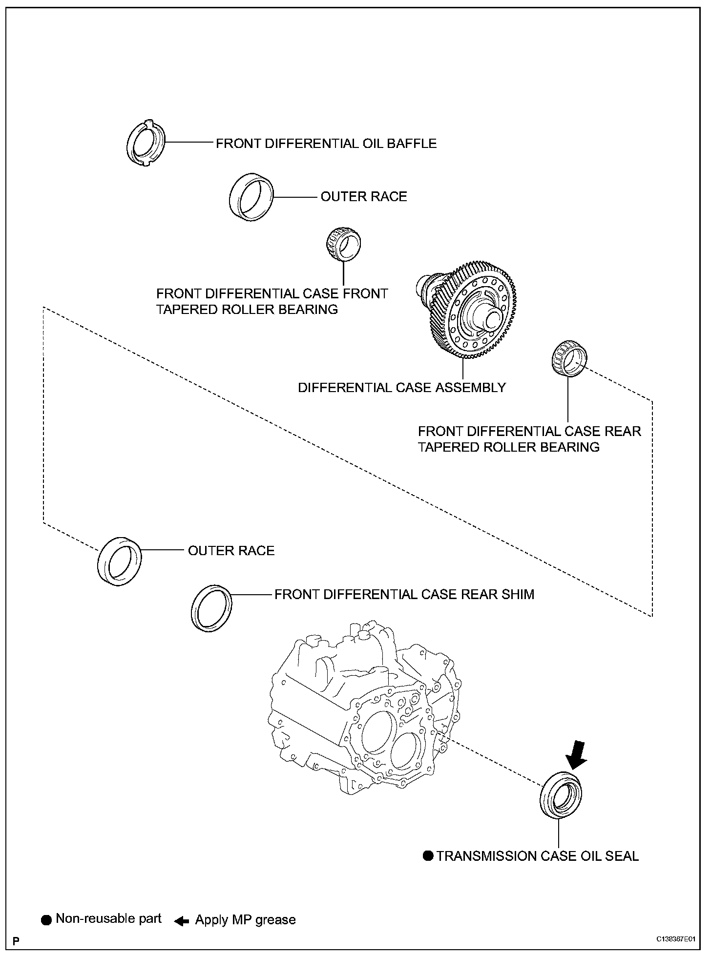 (c) Tapping with a plastic hammer, remove the manual transmission case.